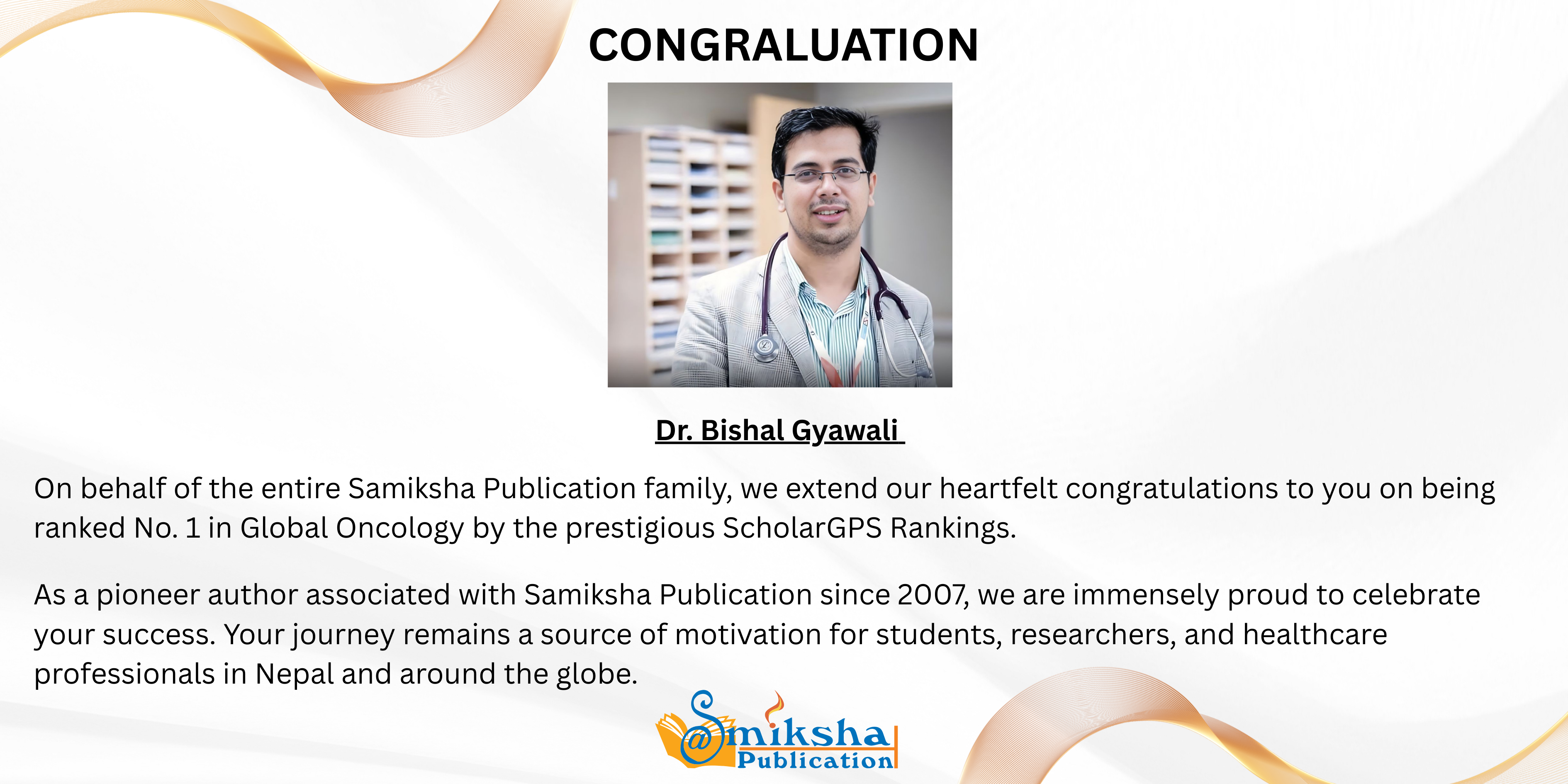 The entire Samiksha Publication family congratulates Dr. Bishal Gyawali on this well-deserved recognition and wishes him continued success and influence in the years ahead.
