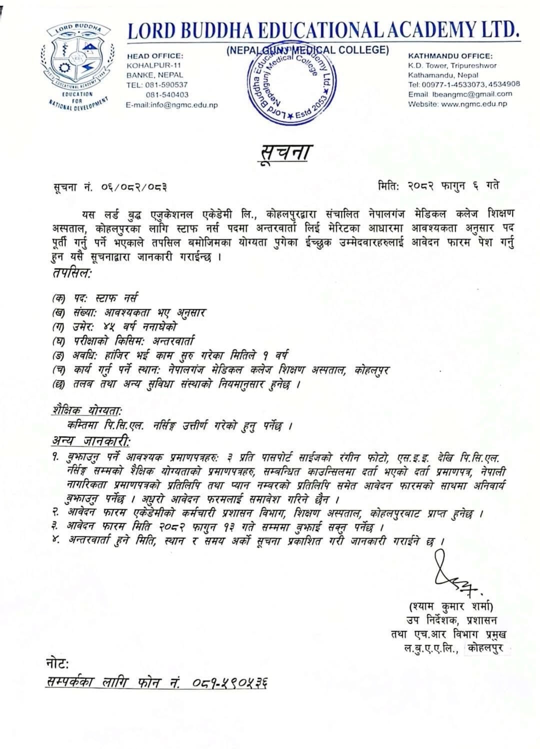 Nepalgunj Medical College - vacancy for Staff Nurse