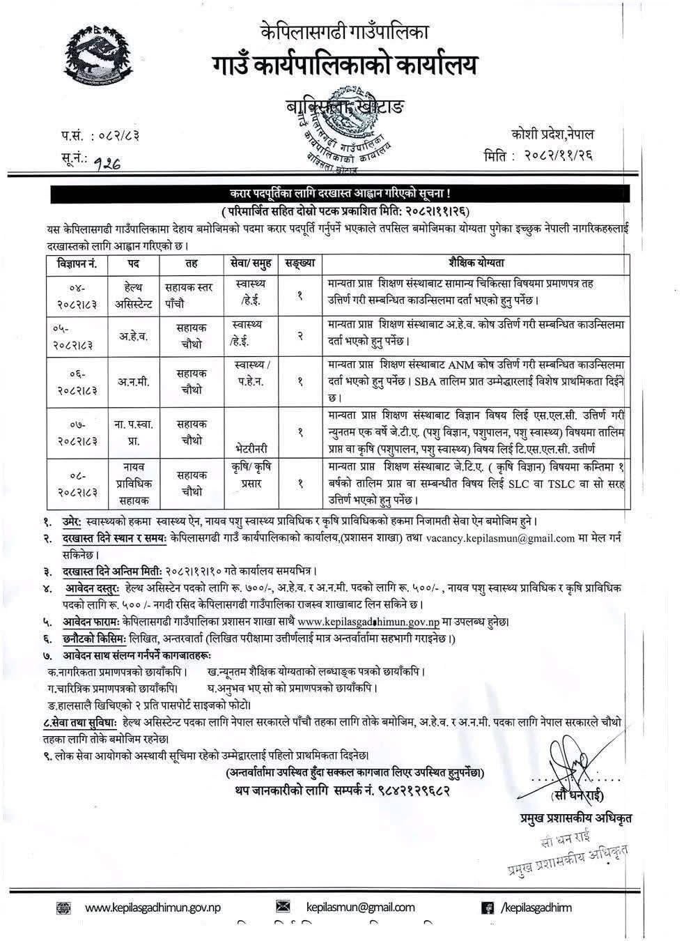 Kepilashgadi Rural Municipality, Khotang- Vacancy for H.A., AHW and ANM