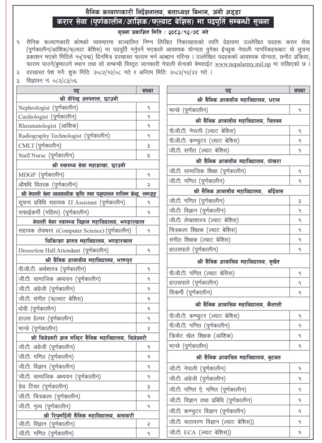 Nepal ArmyVacancy for Consultants, Staff_Nurse, Lab Tech, Radio Technologist and other posts