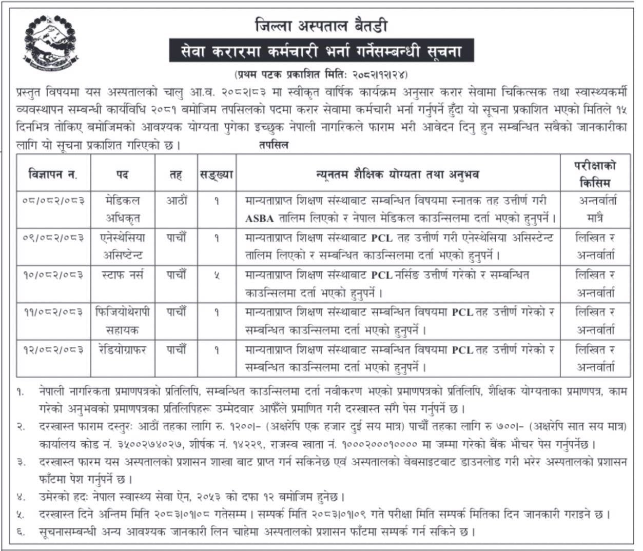 Provincial Hospital, Lamjung Vacancy for Staff Nurse, Lab Tech and Anesthesiologist