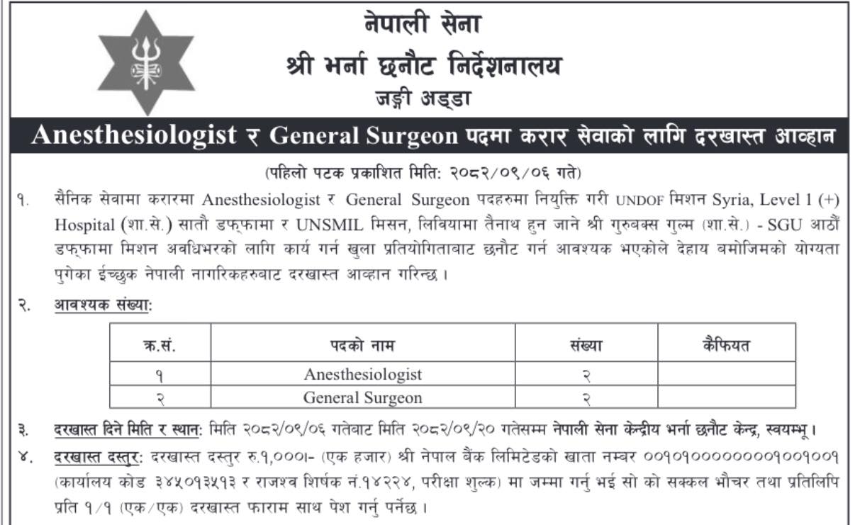 Vacancy for Anesthesiologist and General Surgeon in Nepal Army